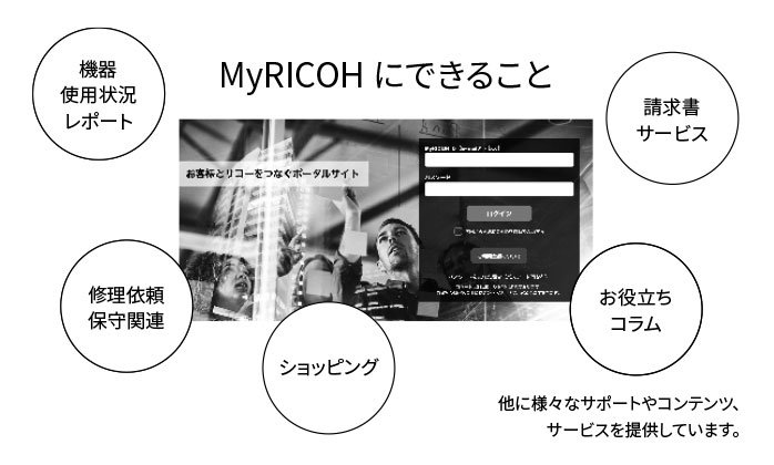 グループ会社がお客様に向けて提供しているポータルサイト“MyRICOH(マイリコー)”のWebアプリケーション開発です。リコー製機器のサポートや仕事に役立つコンテンツ・サービスを提供するポータルサイトで、お客様の要望を聞いて何を作るかを決める要件定義から、設計・構築・運用に至るまでの工程を幅広く担当しています。